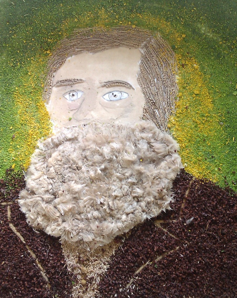 The Garden Links Carlisle Group created this fantastic John Muir collage at Watchtree Nature Reserve. They used natural materials including seeds, thistle down and feather.